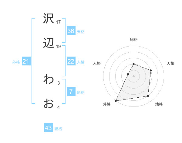 沢辺 わおさんの天格は36画の3点!