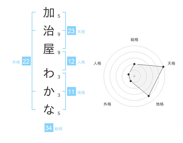 加治屋 わかなさんを姓名の画数から五運を鑑定