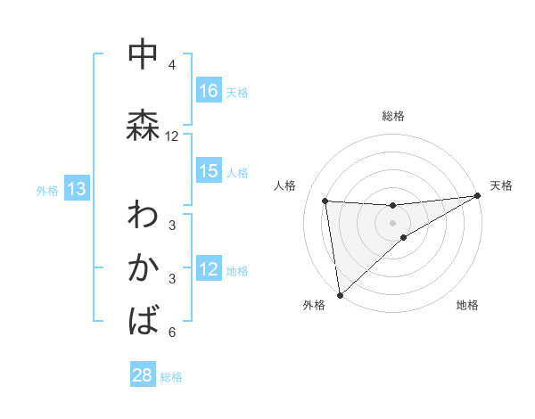 中森 わかばさんの外格は13画の5点!