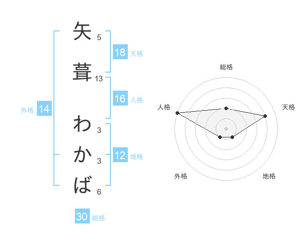 矢葺 わかばさんの天格は18画の4点!