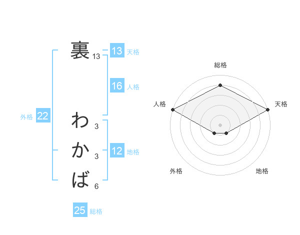 裏 わかばさんの天格は13画の5点!