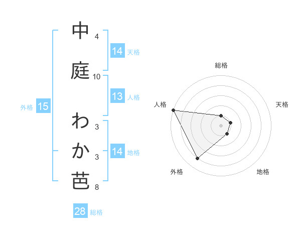 中庭 わか芭さんを姓名の画数から五運を鑑定