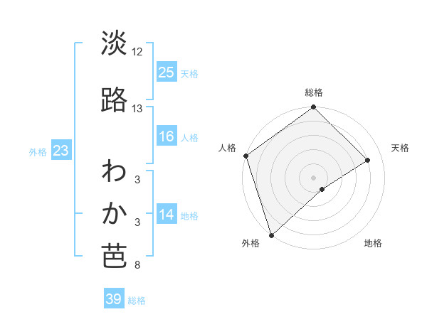 淡路 わか芭さんを姓名の画数から五運を鑑定