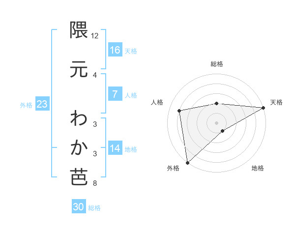 隈元 わか芭さんを姓名の画数から五運を鑑定