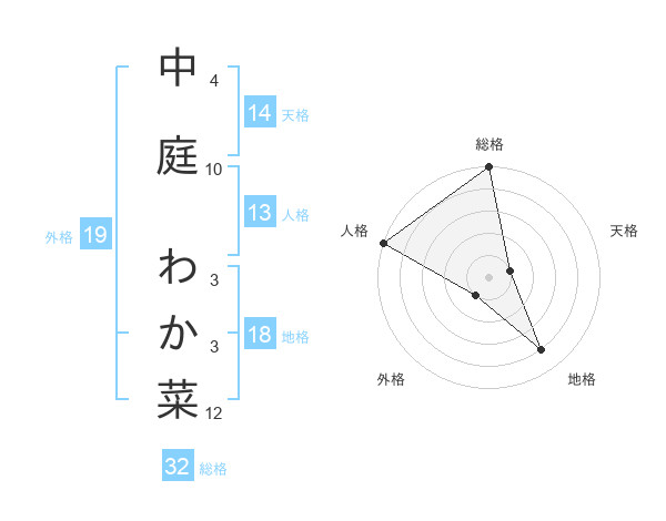 中庭 わか菜さんを姓名の画数から五運を鑑定
