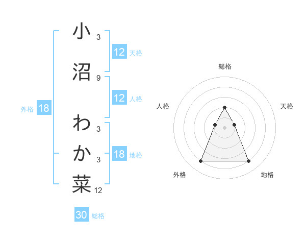 小沼 わか菜さんを姓名の画数から五運を鑑定