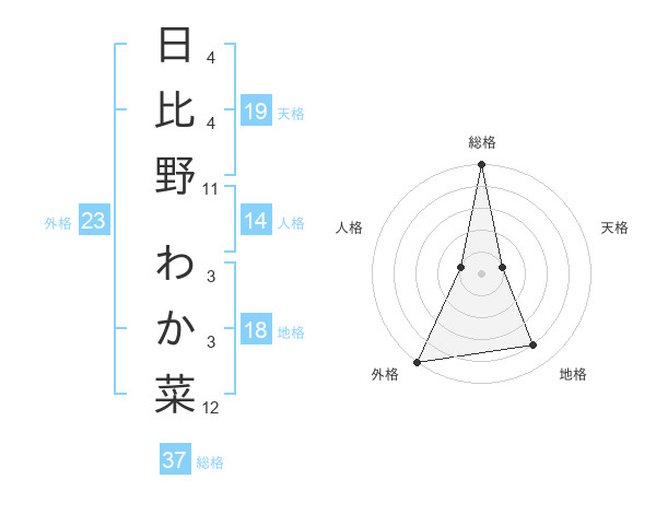 日比野 わか菜さんを姓名の画数から五運を鑑定