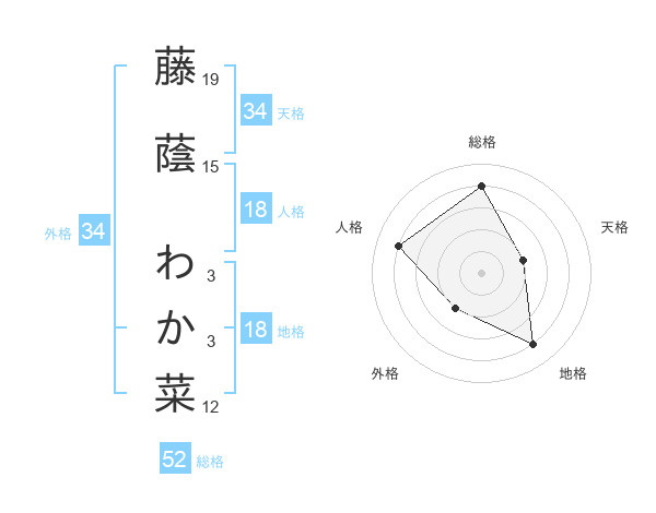 藤蔭 わか菜さんの総格は52画の4点!