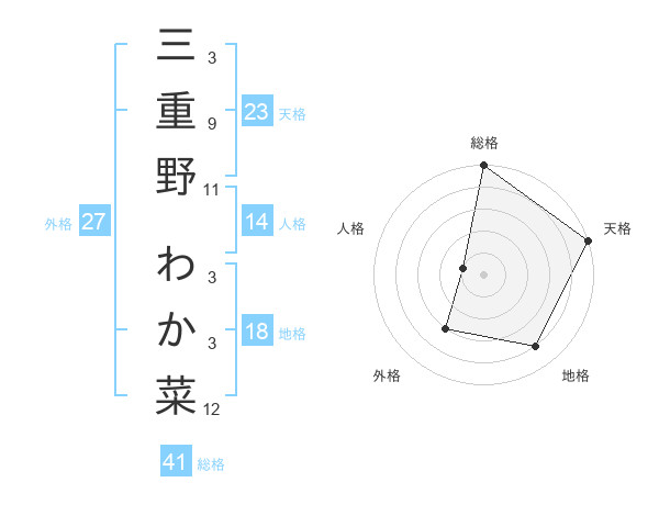 三重野 わか菜さんの天格は23画の5点!