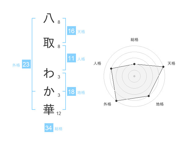 八取 わか華さんの外格は23画の5点!