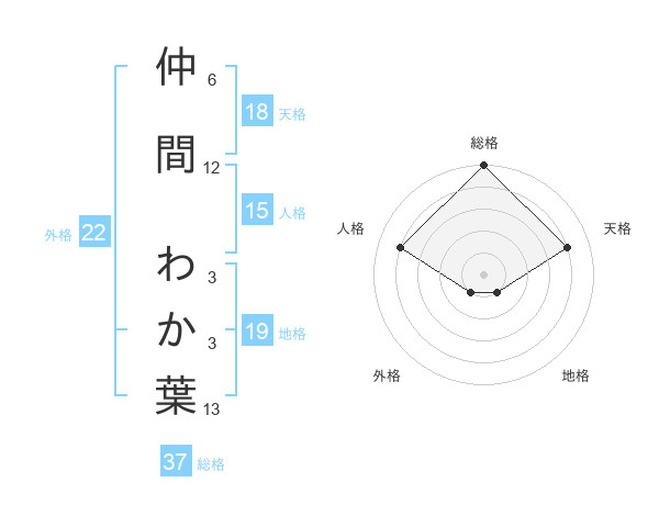 仲間 わか葉さんを姓名の画数から五運を鑑定