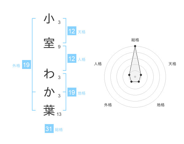 小室 わか葉さんの天格は12画の1点!