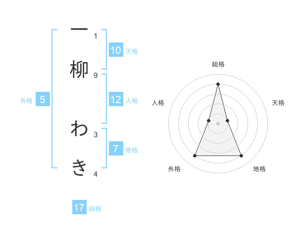 一柳 わきさんの総格は17画の4点!