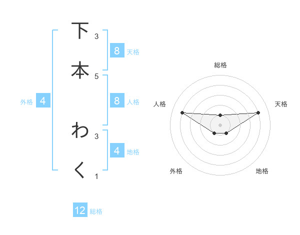 下本 わくさんの総格は12画の1点!