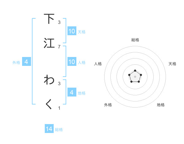 下江 わくさんの総格は14画の1点!