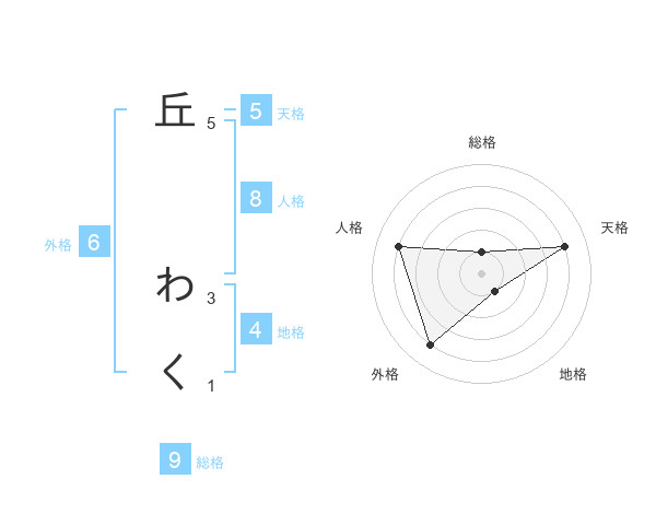 丘 わくさんの総格は9画の1点!
