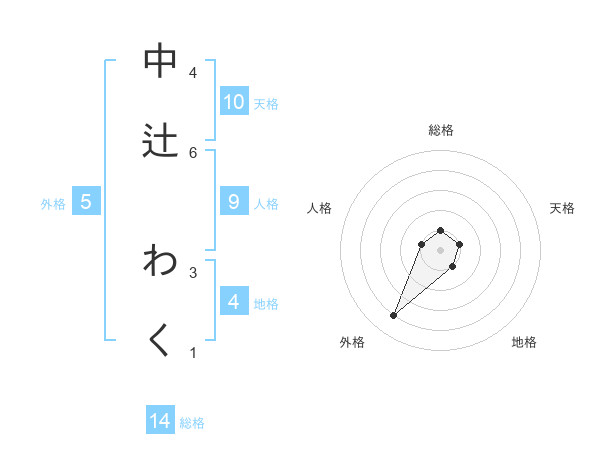 中辻 わくさんの外格は5画の4点!