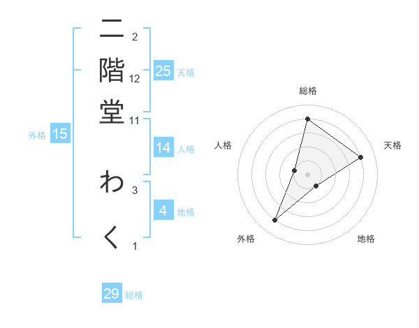 二階堂 わくさんを姓名の画数から五運を鑑定