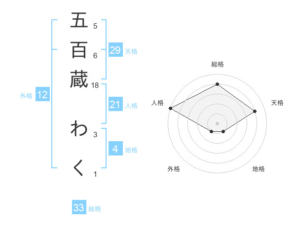 五百蔵 わくさんを姓名の画数から五運を鑑定