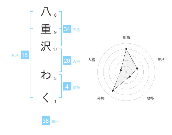 八重沢 わくさんの総格は38画の4点!