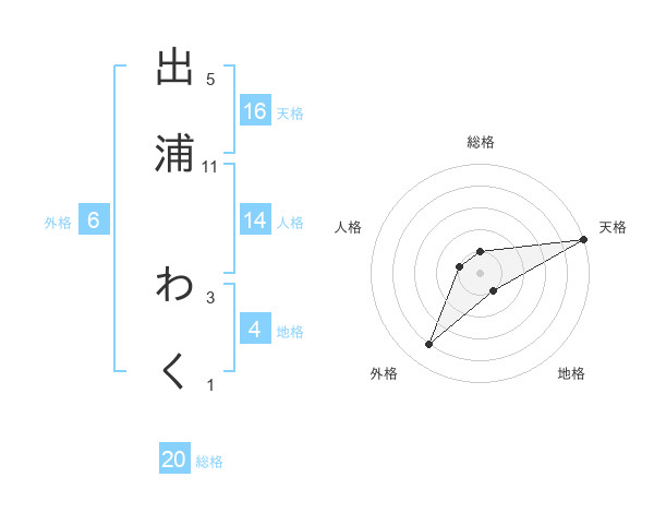 占い結果は姓名判断である以上、良い場合も悪い場合もありますが、決してお名前を誹謗中傷するものでなく、画数の自動計算によって得られたものです。また、本サイトの検索によって得られた鑑定結果で、第三者を誹謗中傷したり名誉を棄損するような行為を禁じます。