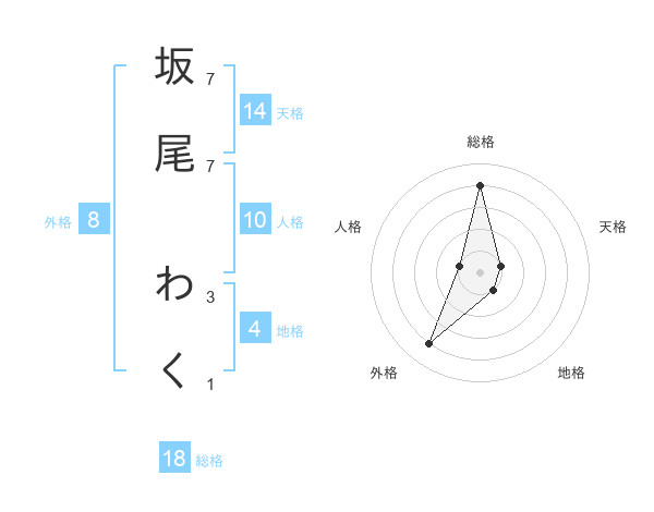 坂尾 わくさんの総格は18画の4点!