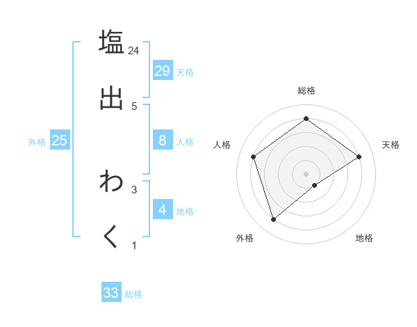 塩出 わくさんの総格は33画の4点!