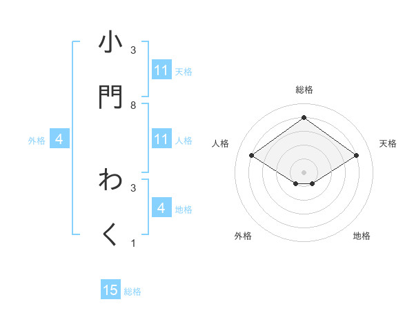 小門 わくさんの総格は15画の4点!