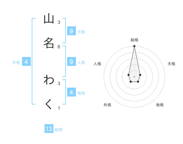 山名 わくさんの総格は13画の5点!