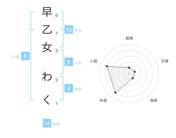 早乙女 わくさんを姓名の画数から五運を鑑定