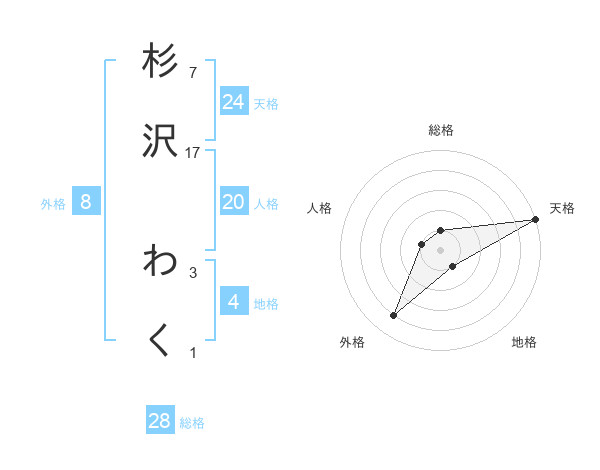 杉沢 わくさんの総格は28画の1点!