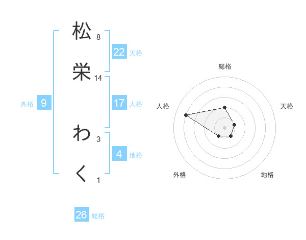 松栄 わくさんの天格は22画の1点!