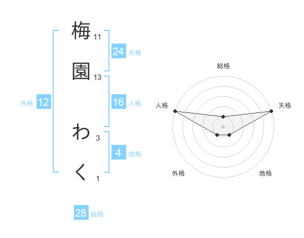 梅園 わくさんの総格は28画の1点!