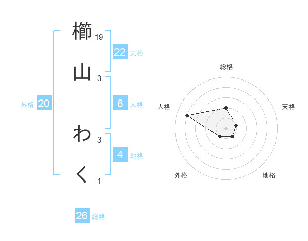 櫛山 わくさんの総格は26画の2点!
