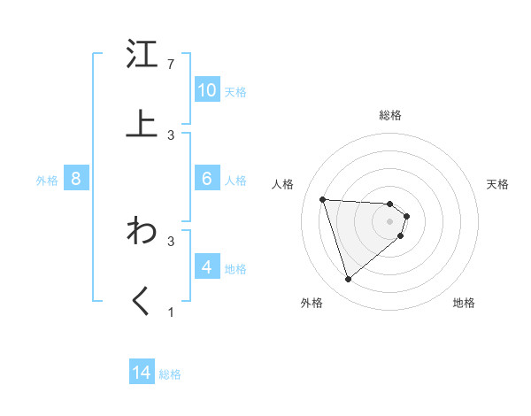 江上 わくさんの総格は14画の1点!