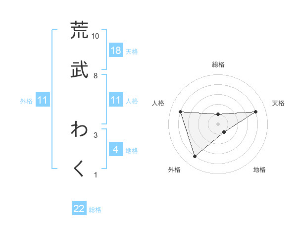 荒武 わくさんの総格は22画の1点!