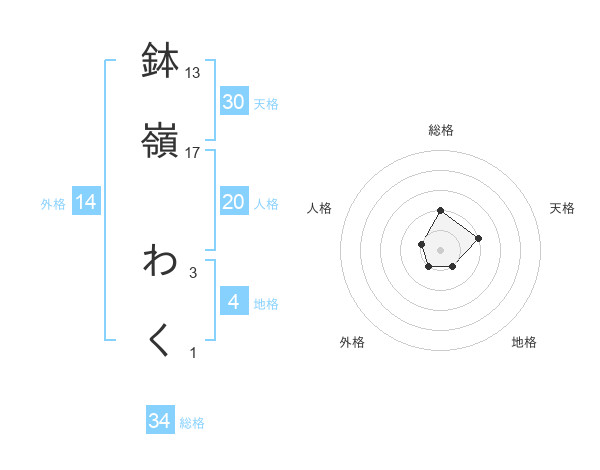 鉢嶺 わくさんの総格は34画の2点!