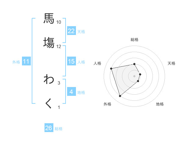 馬塲 わくさんを姓名の画数から五運を鑑定