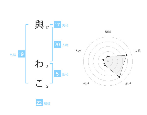與 わこさんの総格は22画の1点!