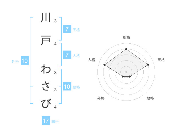 川戸 わさびさんを姓名の画数から五運を鑑定
