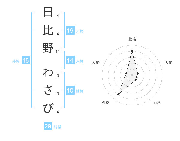 日比野 わさびさんを姓名の画数から五運を鑑定