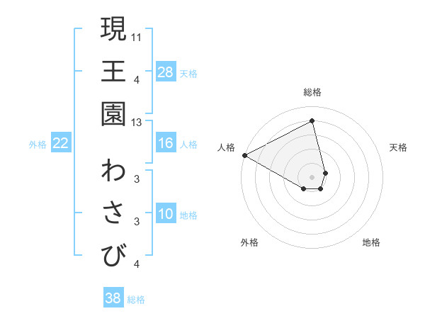 現王園 わさびさんを姓名の画数から五運を鑑定