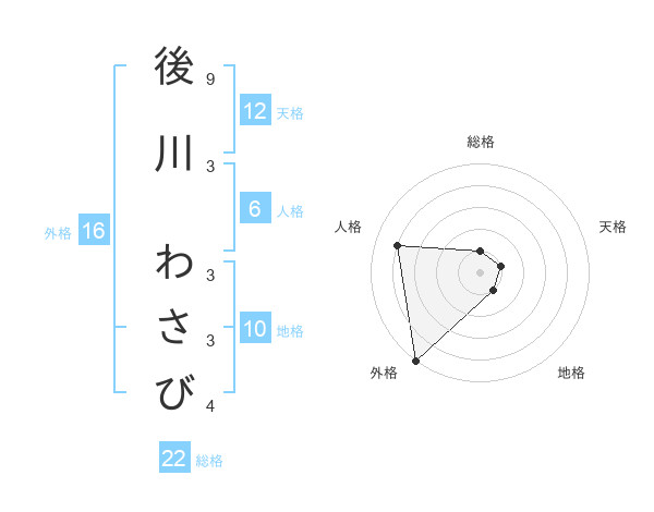 後川 わさびさんの外格は16画の5点!