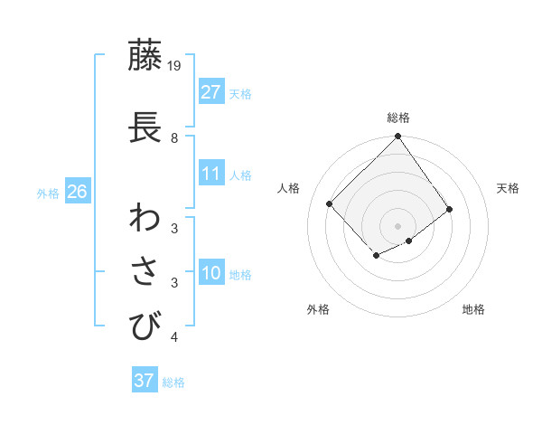 藤長 わさびさんを姓名の画数から五運を鑑定