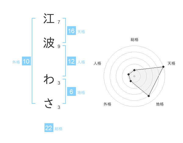 江波 わささんの天格は16画の5点!