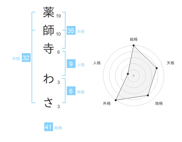 薬師寺 わささんの総格は41画の5点!