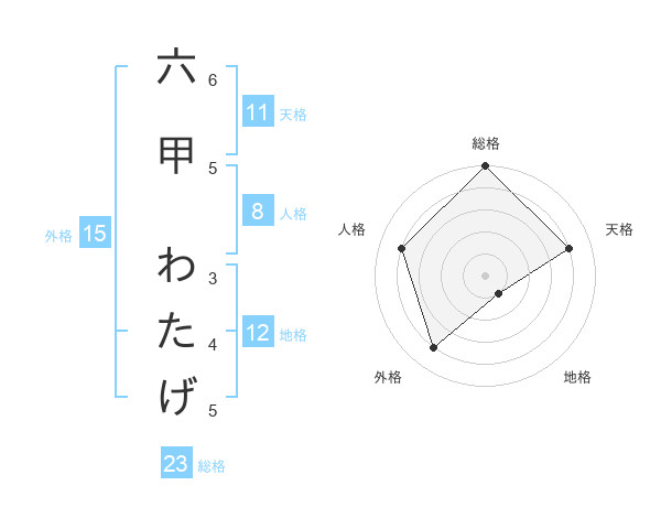 六甲 わたげさんの総格は23画の5点!