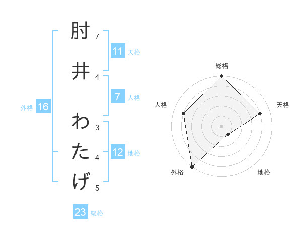 肘井 わたげさんの総格は23画の5点!