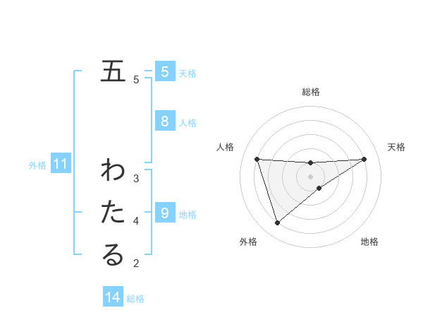 五 わたるさんの総格は14画の1点!