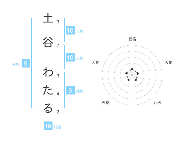 土谷 わたるさんを姓名の画数から五運を鑑定